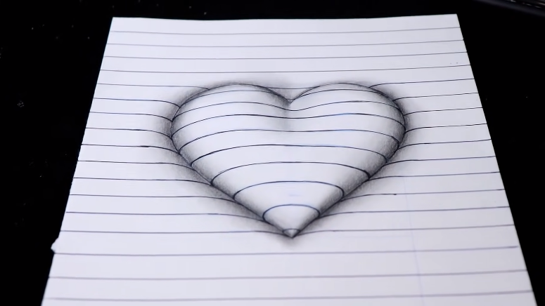 The 3rd step, we have to draw circular curves in how to draw 3d hearts. So we’re going to create more curves under the heart with a black pencil. Learn more about 3d snakes.